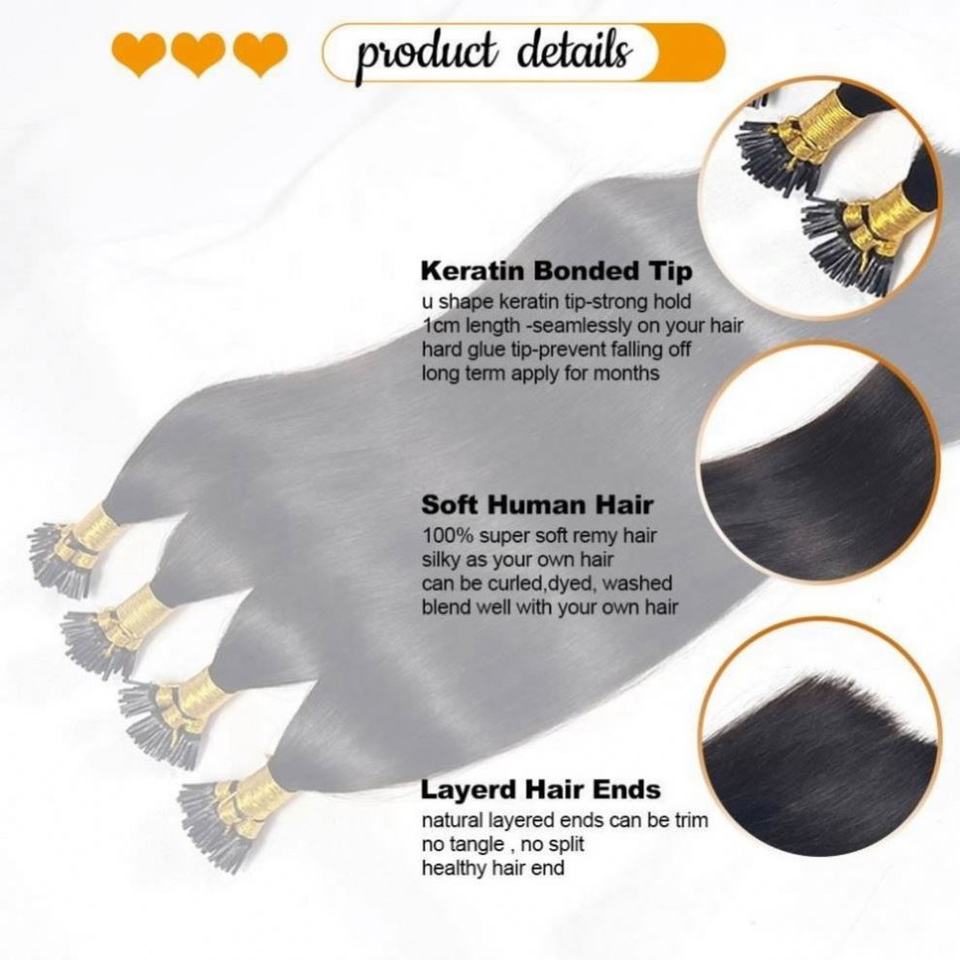 product name:i Tip Hair Extension Raw Russian Hair Micro Links i tip Extensions