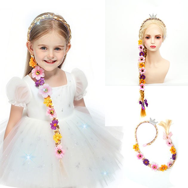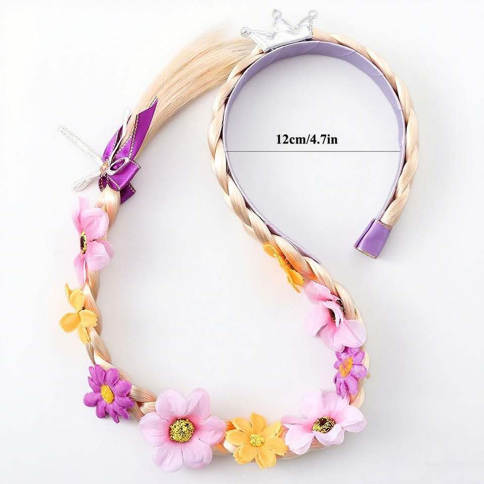Amygirl Synthetic High Temperature Fiber Blonde/Silver Princess Braid Extensions Wig Machine Double Weft Headband Wedding Flower