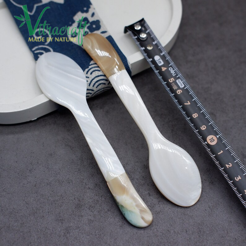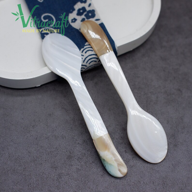 An Impressive Unique Style Caviar Spoon Is Made From Mother of Pearl Mixed with Nautilus a Masterpiece From Nature Size 13cm