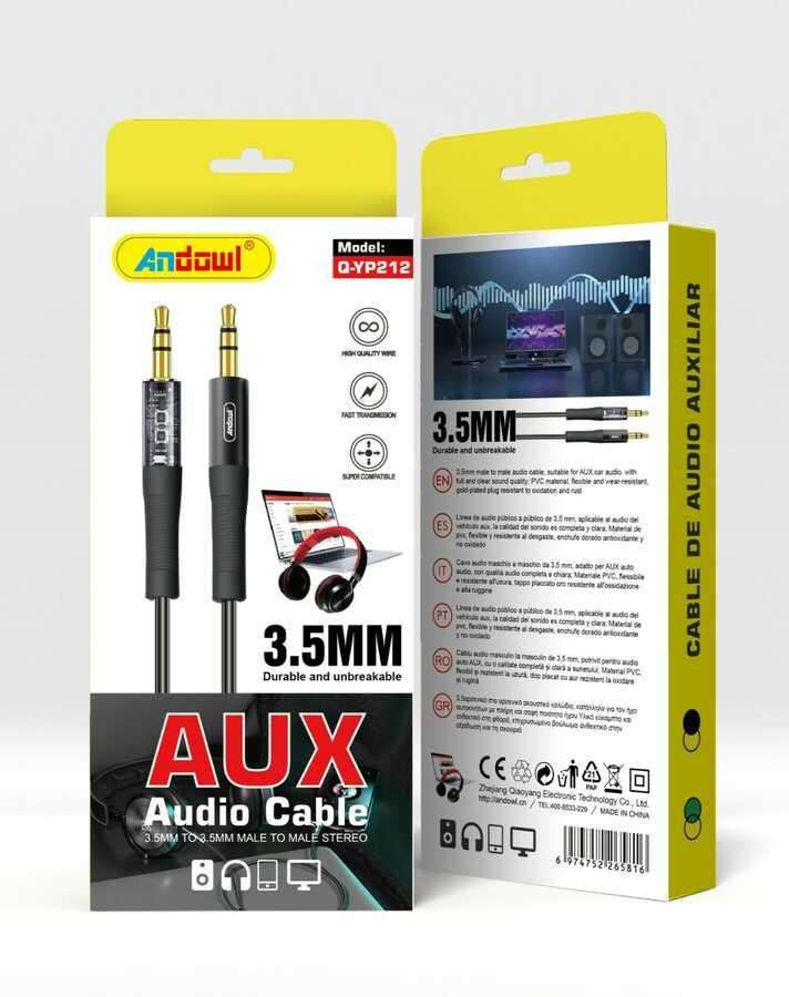 Câble audio Owl 3,5 mm mâle-mâle plaqué or, gaine PVC, blindage tressé, boîte couleur, modèle Q-YP212, fabriqué en Chine, pour autoradio stéréo
