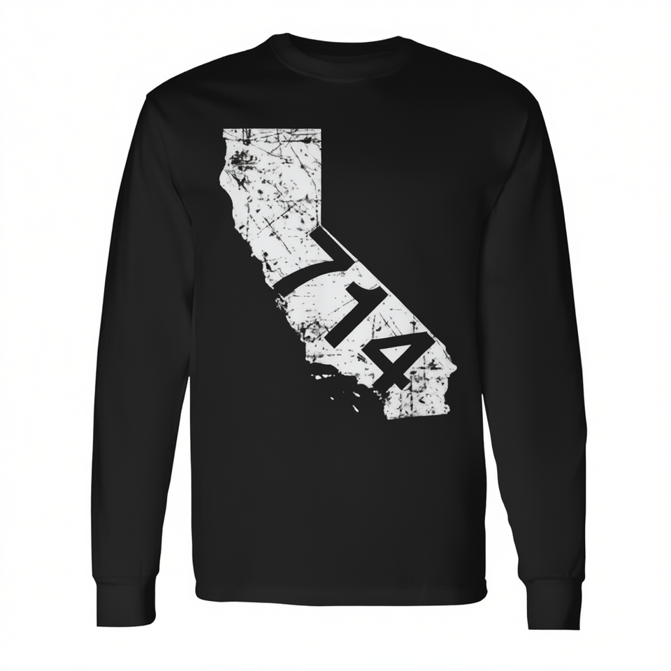 T-shirt promotionnel de Californie à manches longues, code postal 714, Anaheim Santa Ana