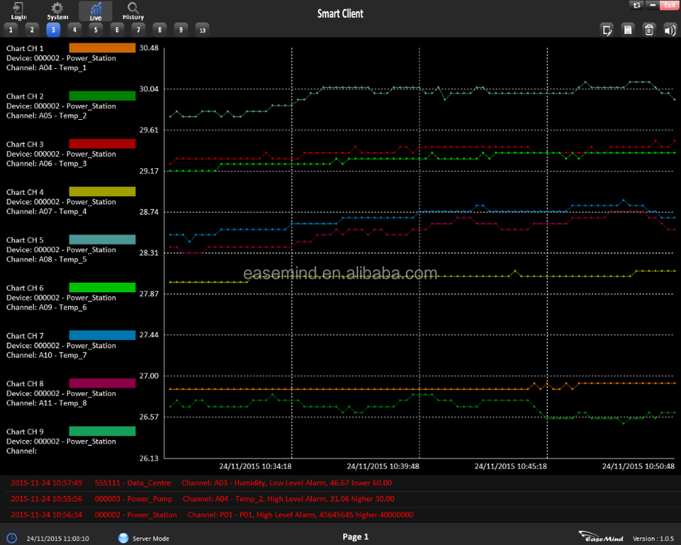 Contrôle intelligent de l'application, Stockage de données, Alarme haute température