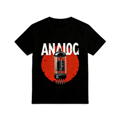 T-shirt graphique à col rond avec impression de lettres, style rétro, pour audiophiles, avec tube à vide analogique, équipement musical vintage, technologie rétro