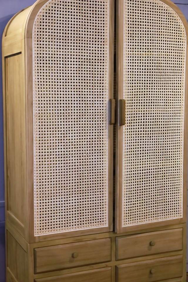 Armoire de chambre Ananta moderne en teck massif et rotin, autoportante, 4 tiroirs, pour bureau à domicile et rangement de salon