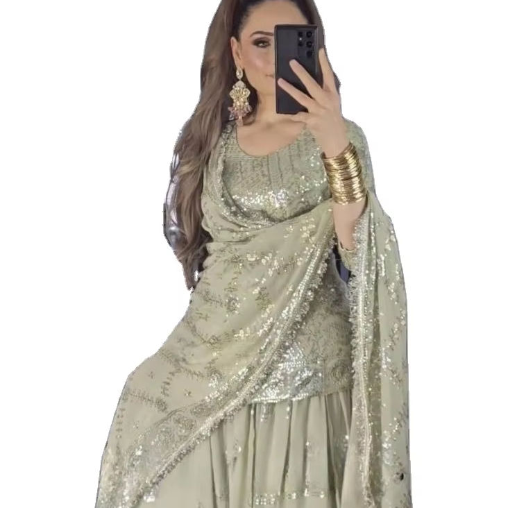 Ensemble Shalwar Kameez indien en viscose imitation georgette, broderie, design magnifique, multicolores, avec un dupatta en tulle lourd, tendance 2024