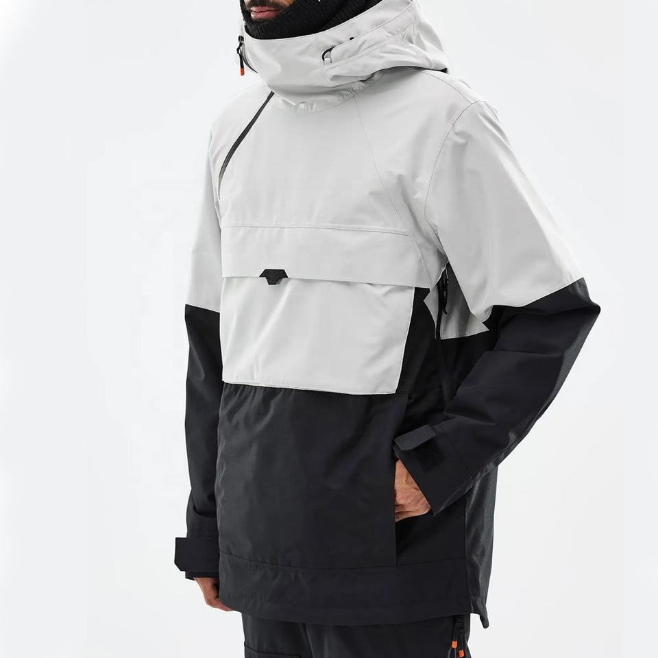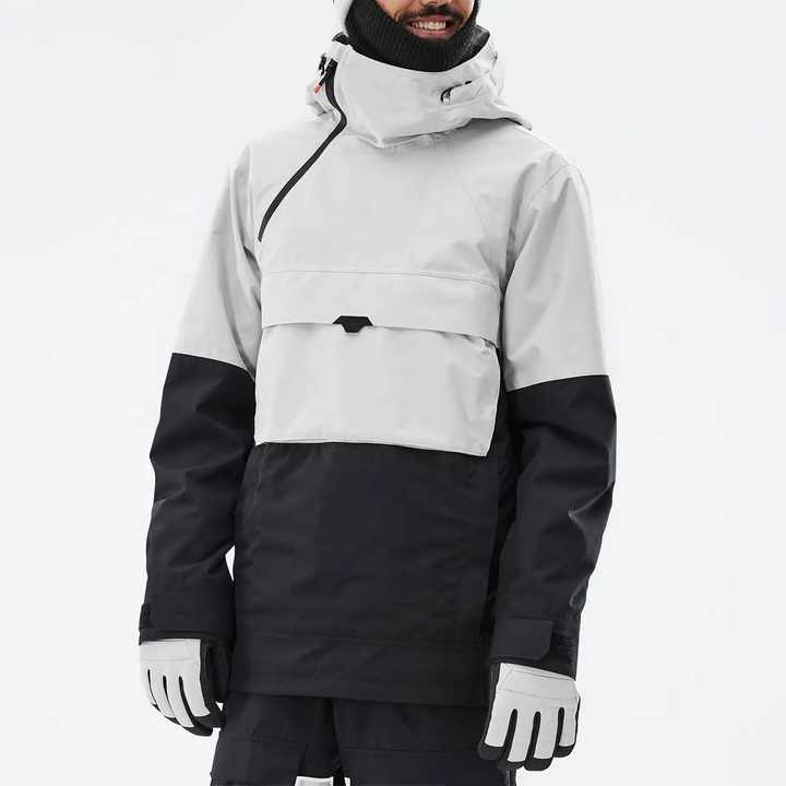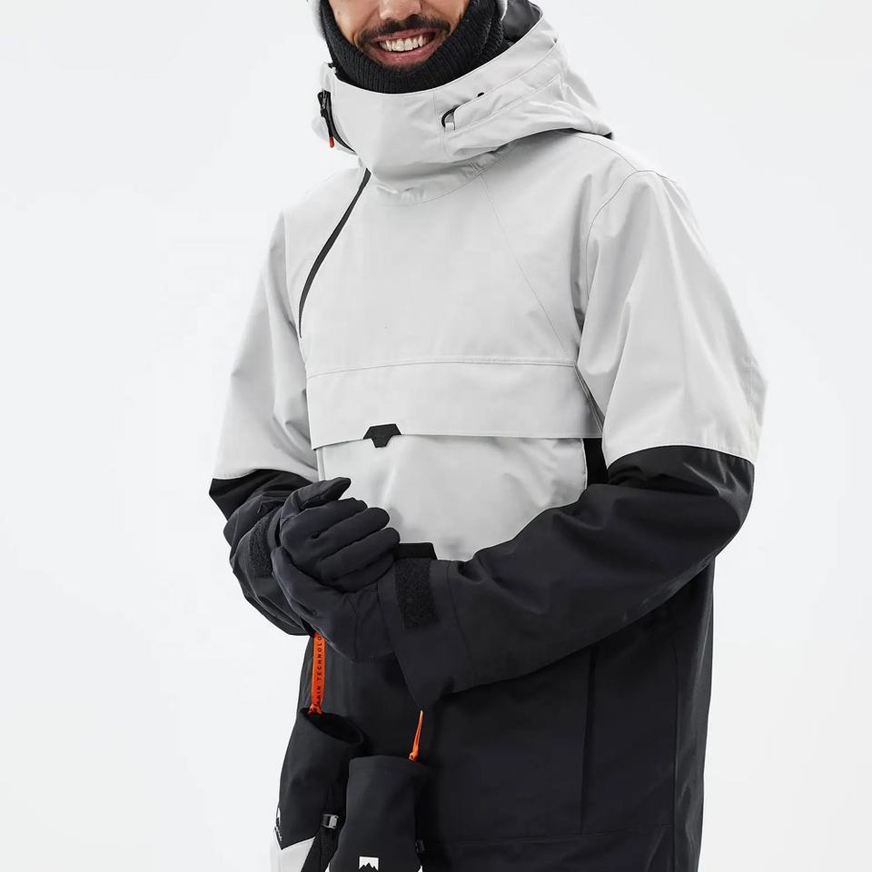 Veste de ski Anarok Hommes Gris clair/Noir imperméable Veste à capuche isolée Poches zippées imperméables/Vêtements de ski de neige Veste de ski unisexe