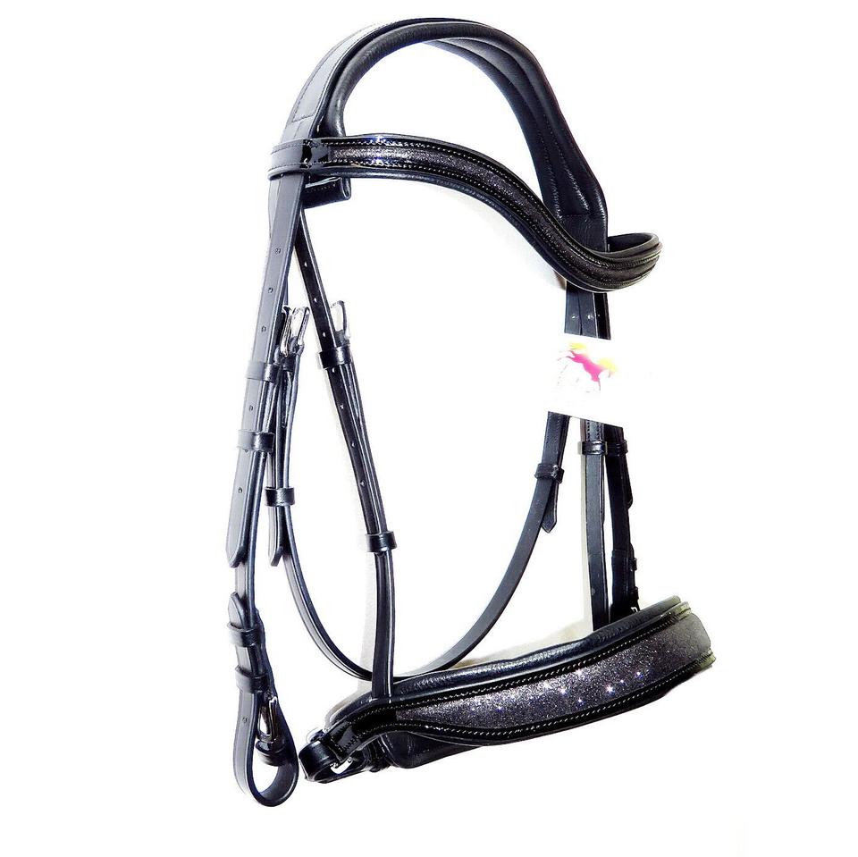 Bride anatomique FSS JET GLITTER BLING FREEFORM Curve CUT AWAY Noseband PATENT Real Leather Horse Bridle Personalized Real