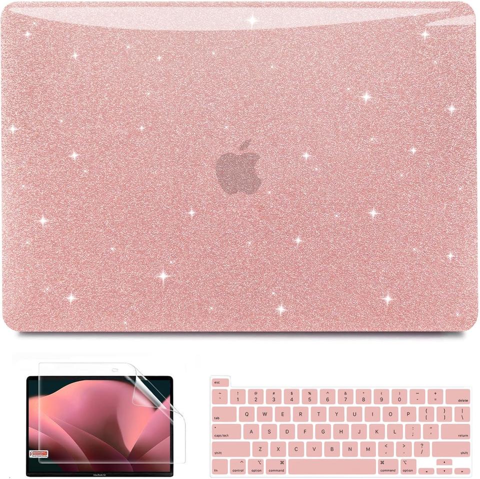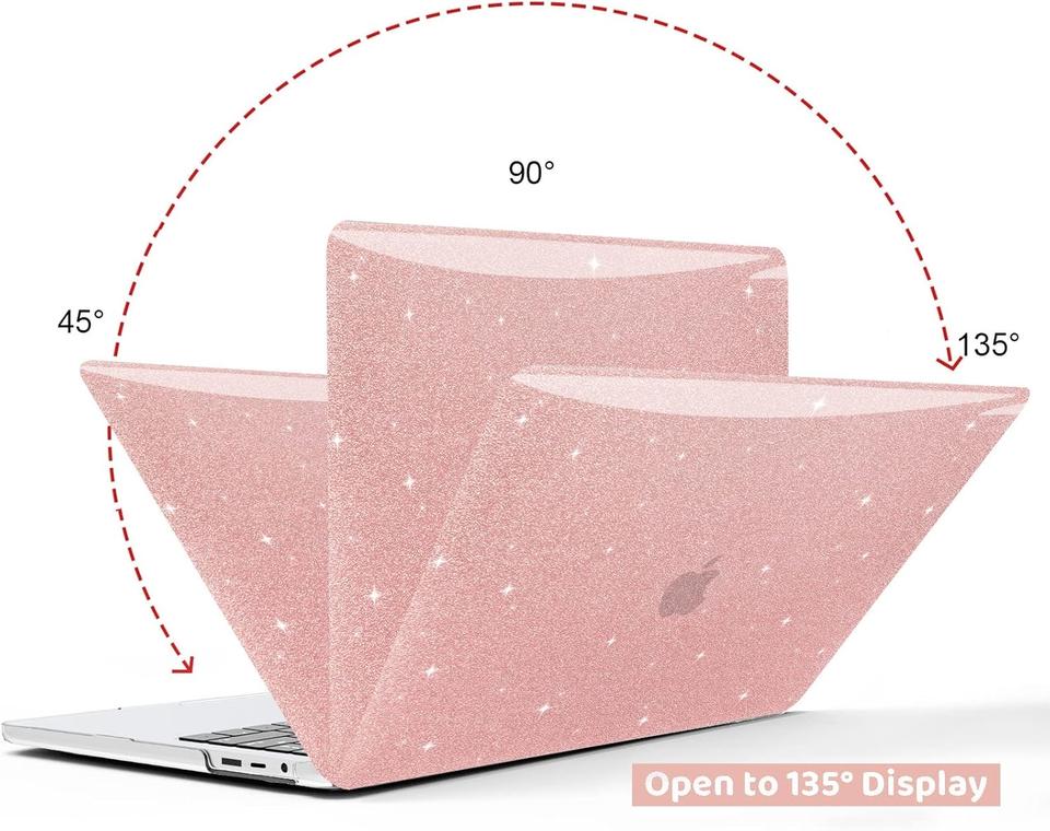 Anban Rose Gold Glitter Plastic Hard Shell Case for Mac Book Pro 13 Inch Includes Keyboard Cover & Screen Protector
