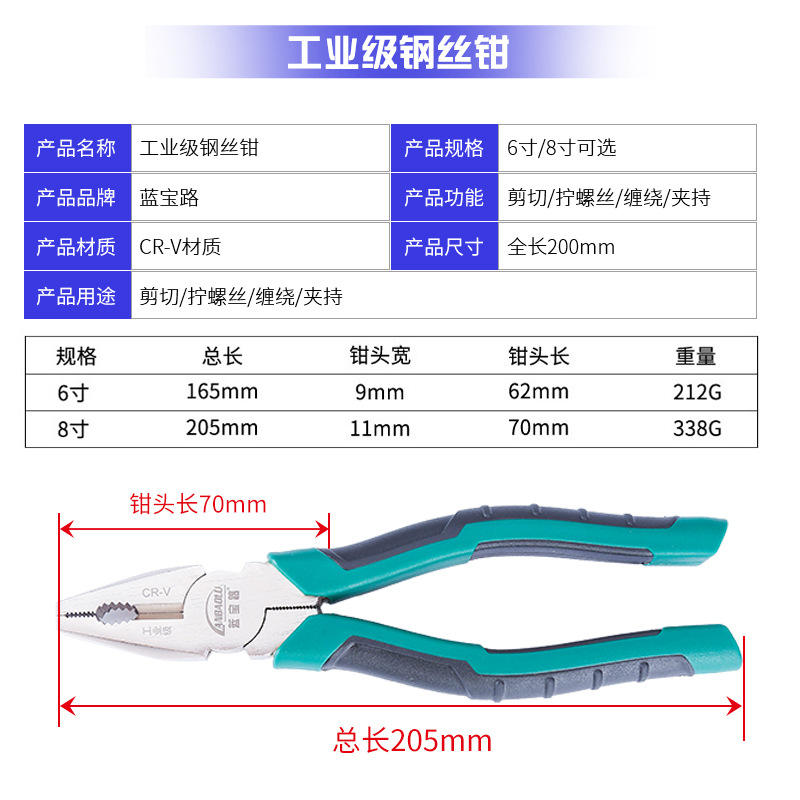 Pince industrielle Anbaolu 8 pouces à mâchoires dentelées pour couper les fils, outil multifonctionnel à mâchoires plates