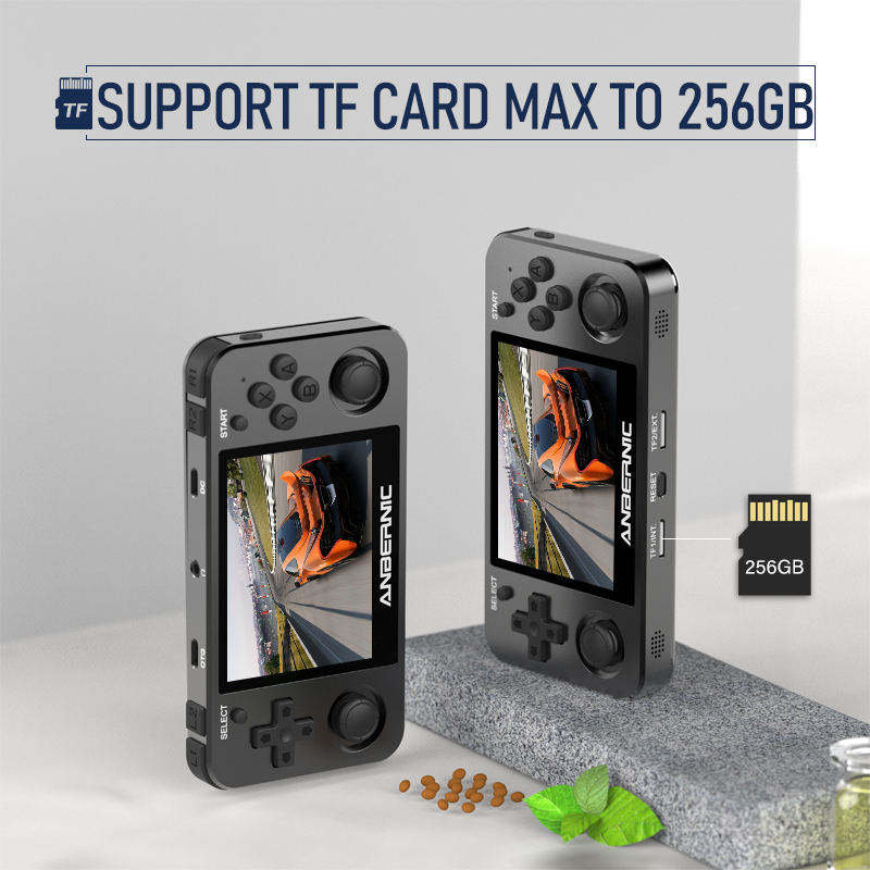 Anbernic 64Bit RG351MP Console de jeu rétro portable 3.5 "IPS OCA 16GB 256GB TF 3500mAh Vibration WiFi Linux Noir mat