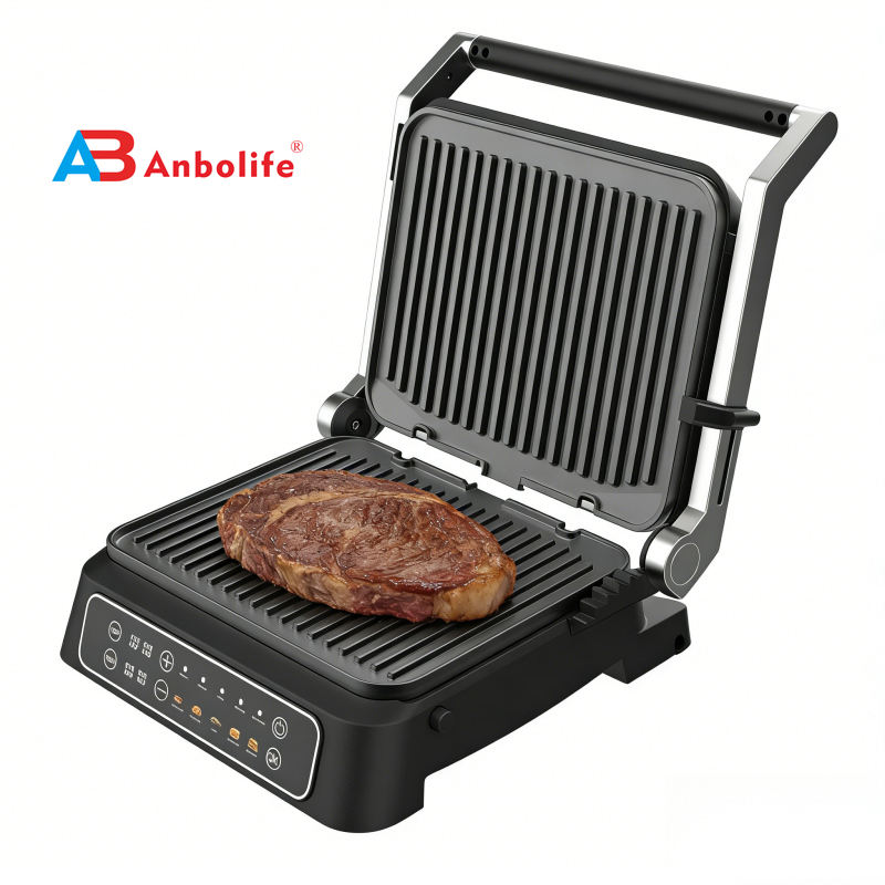 Grill de contact Anbo 4 tranches avec panneau numérique détachable, revêtement antiadhésif, 2000W, en aluminium moulé sous pression, sans fumée