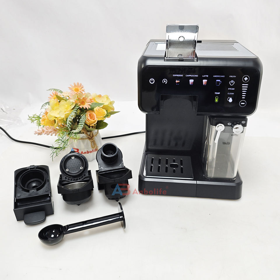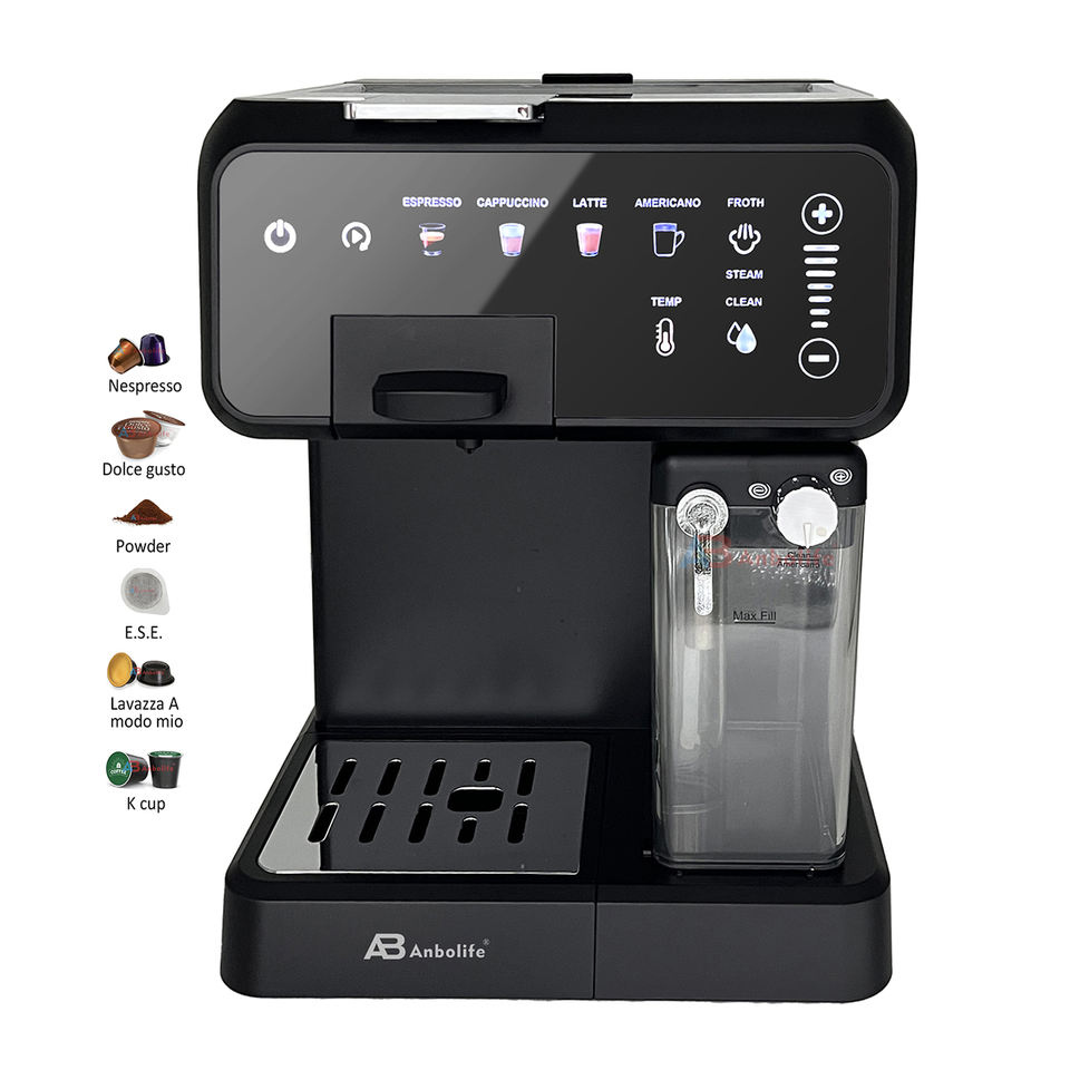 Anbo 6 en 1 Multi-Capsule Digital Touch Control Machine à café expresso Cafetera Profesional Capsule Coffee Maker avec réservoir de lait