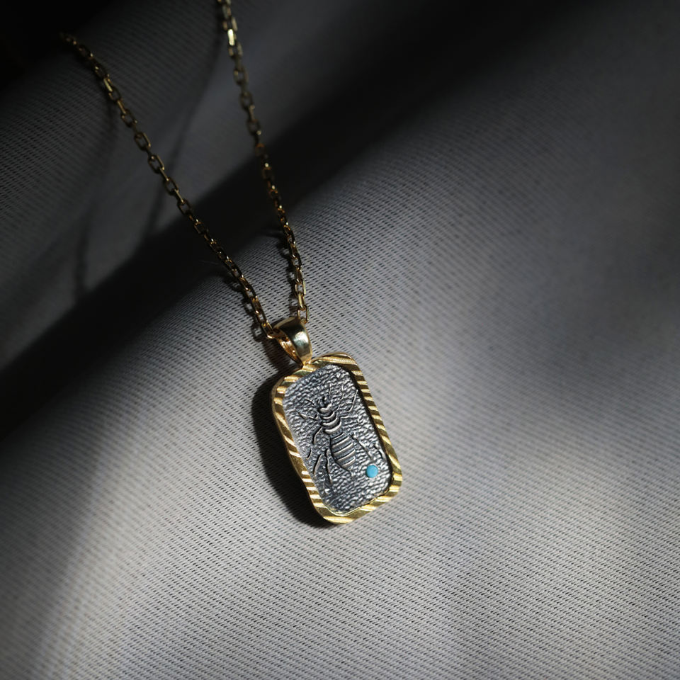 Symbole antique Oeil d'abeille Animal Design Charm Collier Turc Fabriqué à la main en gros Bijoux en argent sterling 925