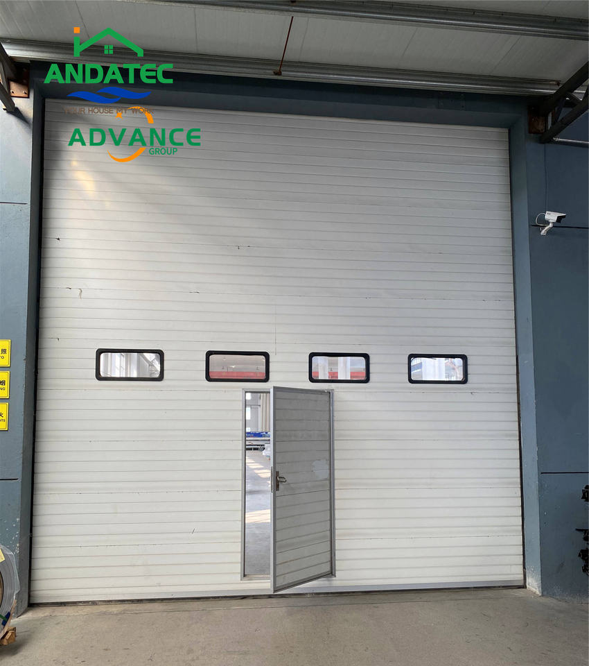 Porte sectionnelle industrielle isolée à faible entretien certifiée CE Anda Porte de hangar en acier galvanisé avec accès piétonnier
