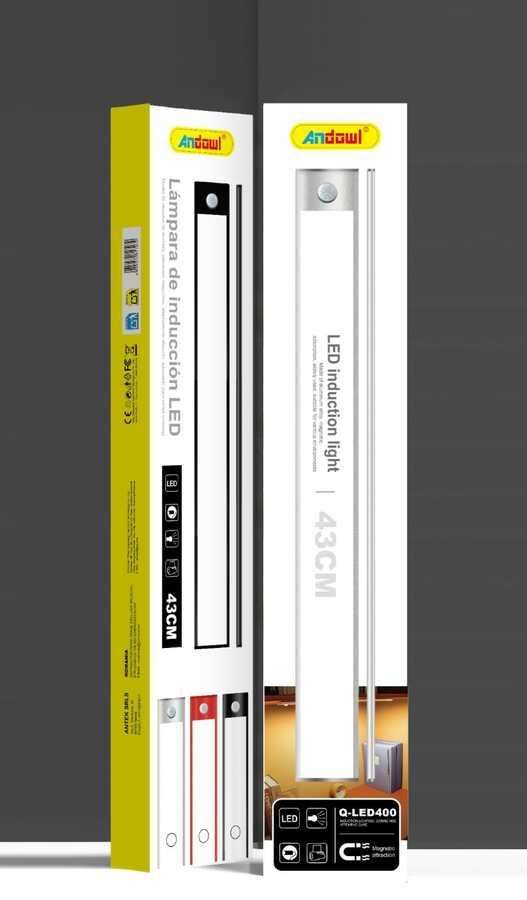 Tube lumineux LED Andaul avec capteur, 43 cm, blanc froid, aluminium, indice de protection IP20, garantie de 3 ans, durée de vie de 50 000 heures, pour usage intérieur
