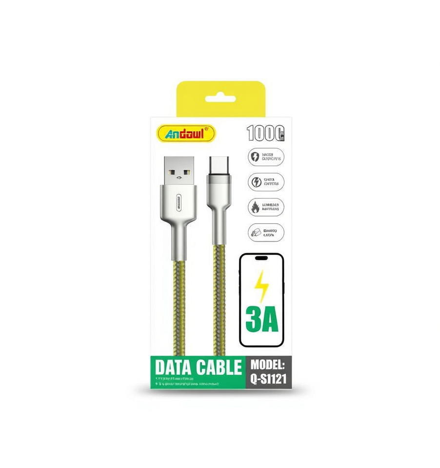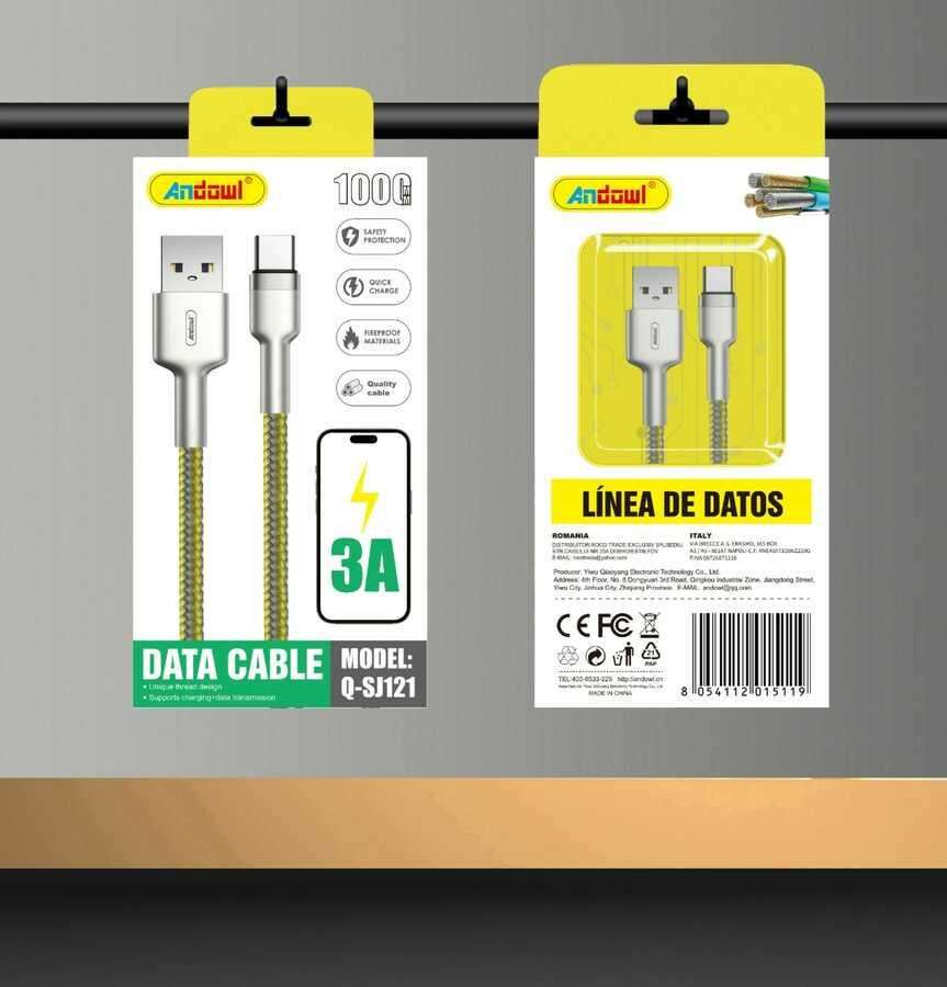 Câble de données Andawl Type C vers USB 3.0, tressé en nylon, charge rapide 3A, conducteur en cuivre pur pour téléphone portable Q-SI121