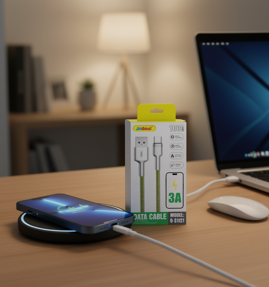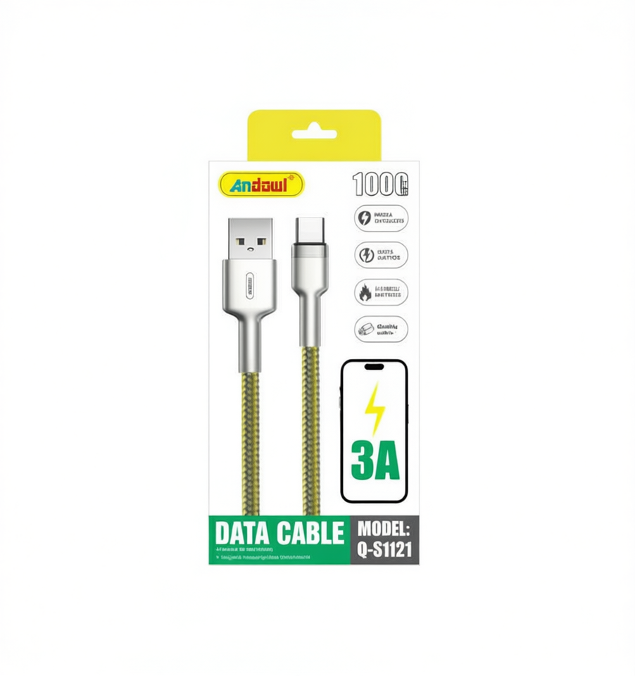 Câble de données Andawl Type C vers USB 2.0, tressé en nylon, conducteur en cuivre pur, charge rapide 3A pour téléphone portable Q-S1121