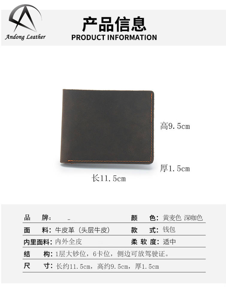 Andong Leather New Short Wallet Purse for Men Grazy Horse Leather Retro Clutch Bag Key Bag Multi-function Card Holder Coin Purse
