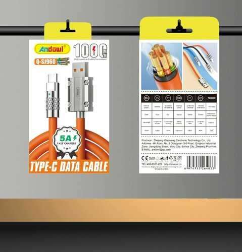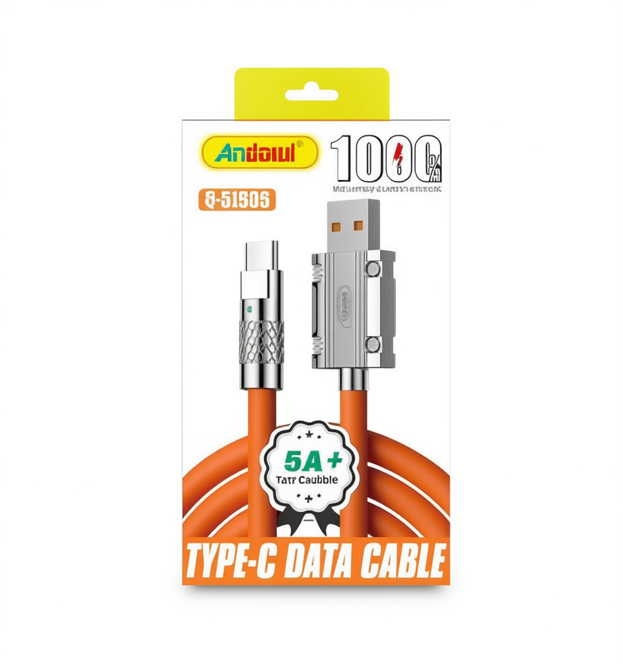 Câble de données Type-C Andoul 5A, charge rapide, transfert de données, orange, alliage d'aluminium, blindé, conducteur en cuivre pur pour téléphone portable