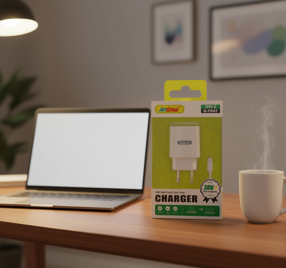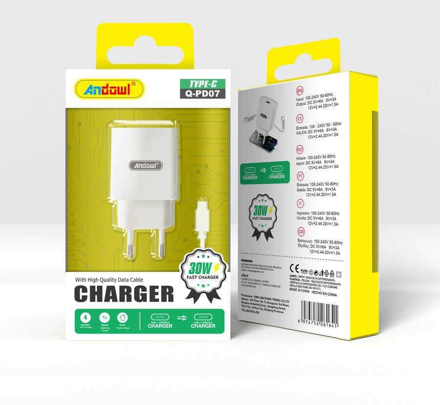 Chargeur Andowl 30W Type-C à charge rapide, entrée USB, transfert de données pour téléphone portable, matériau ignifuge, protection contre les surtensions, modèle