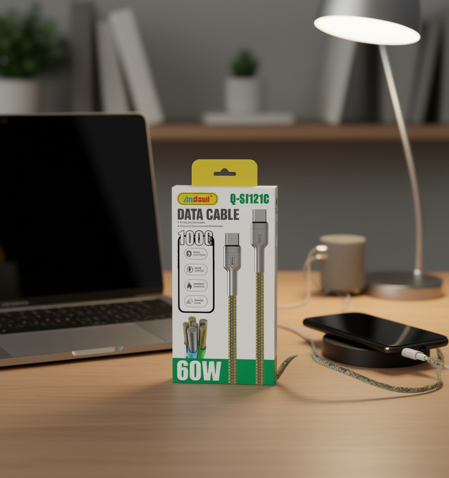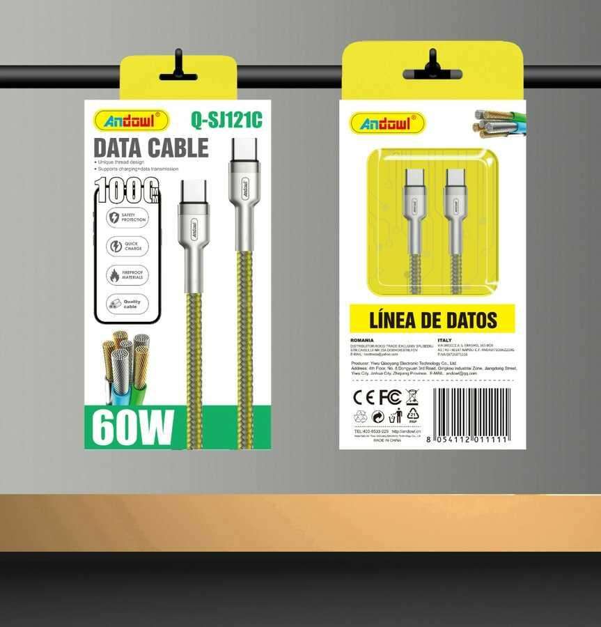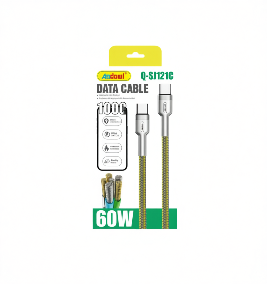 Câble de données Andowl Q-SJ121C Type-C USB 3.1 6A à charge rapide, blindage en nylon tressé en cuivre pur pour téléphone portable