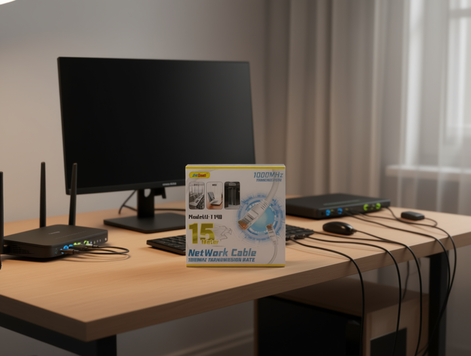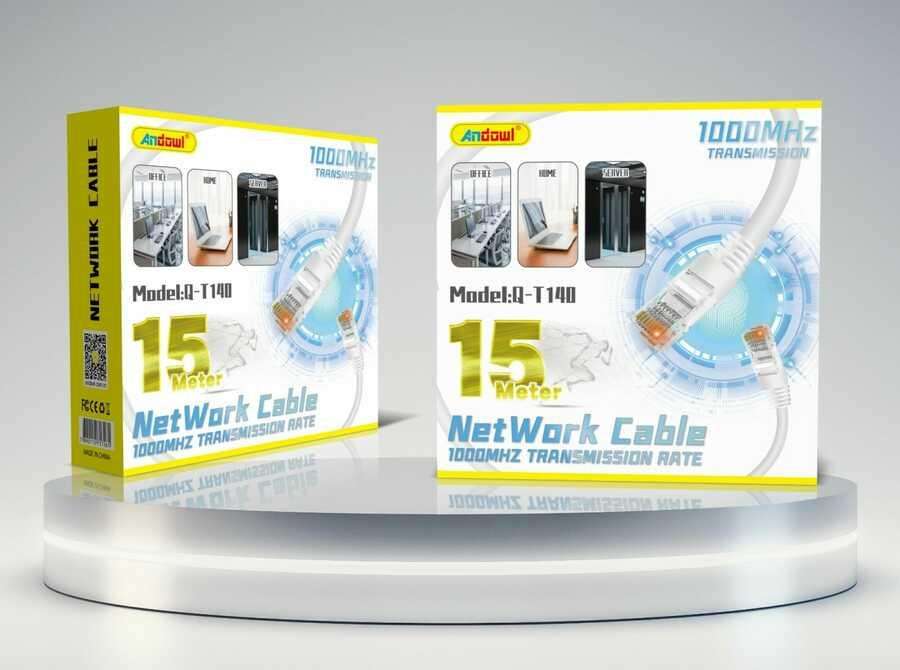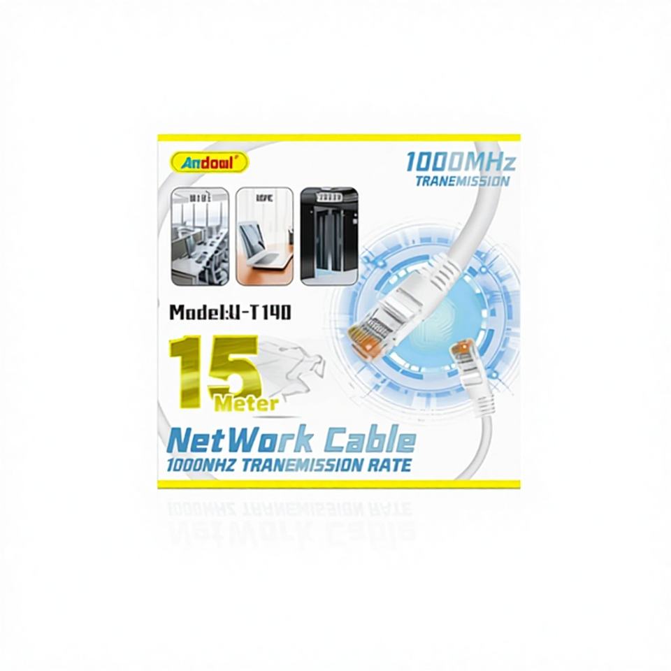 Câble réseau Andowl 15 mètres blindé en cuivre pur avec connecteurs nickelés gaine blanche HJ-T198 pour transmission informatique