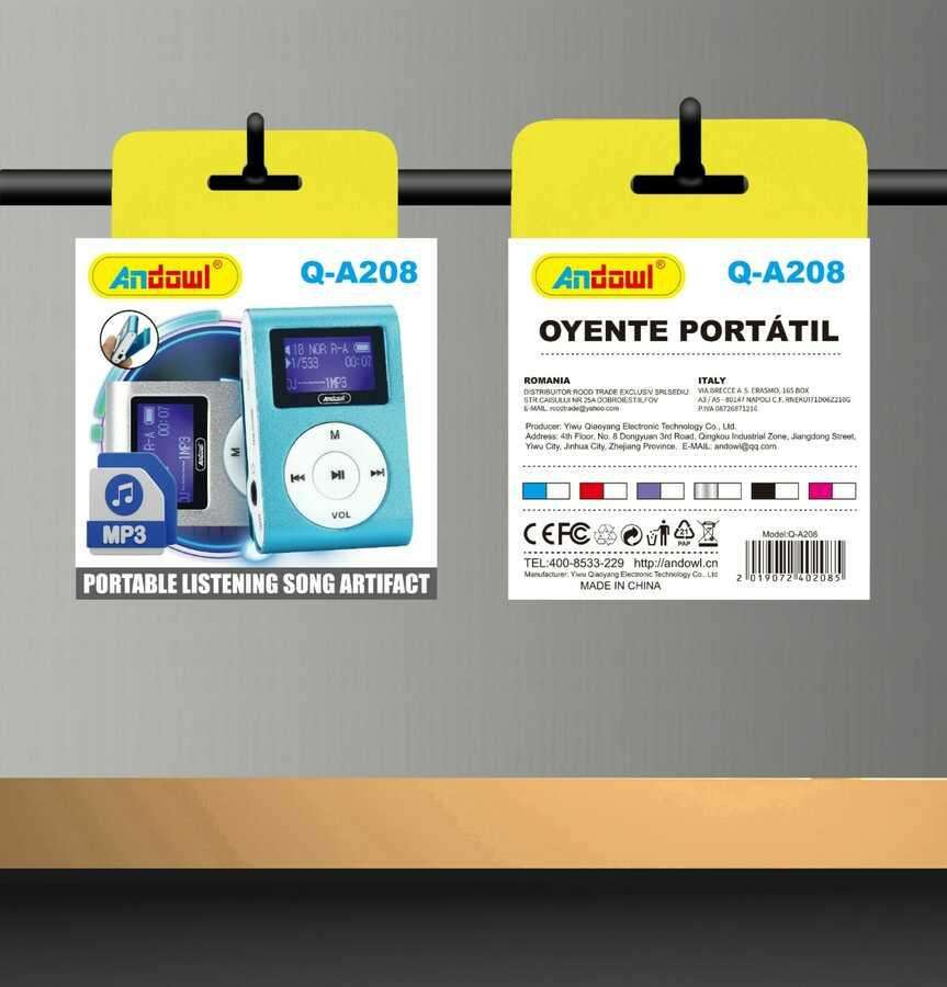 Lecteur MP3 Andowl Q-A208, lecteur audio portable avec écran de 2 à 4 pouces, corps en plastique, prend en charge le format MP3 pour une écoute portable