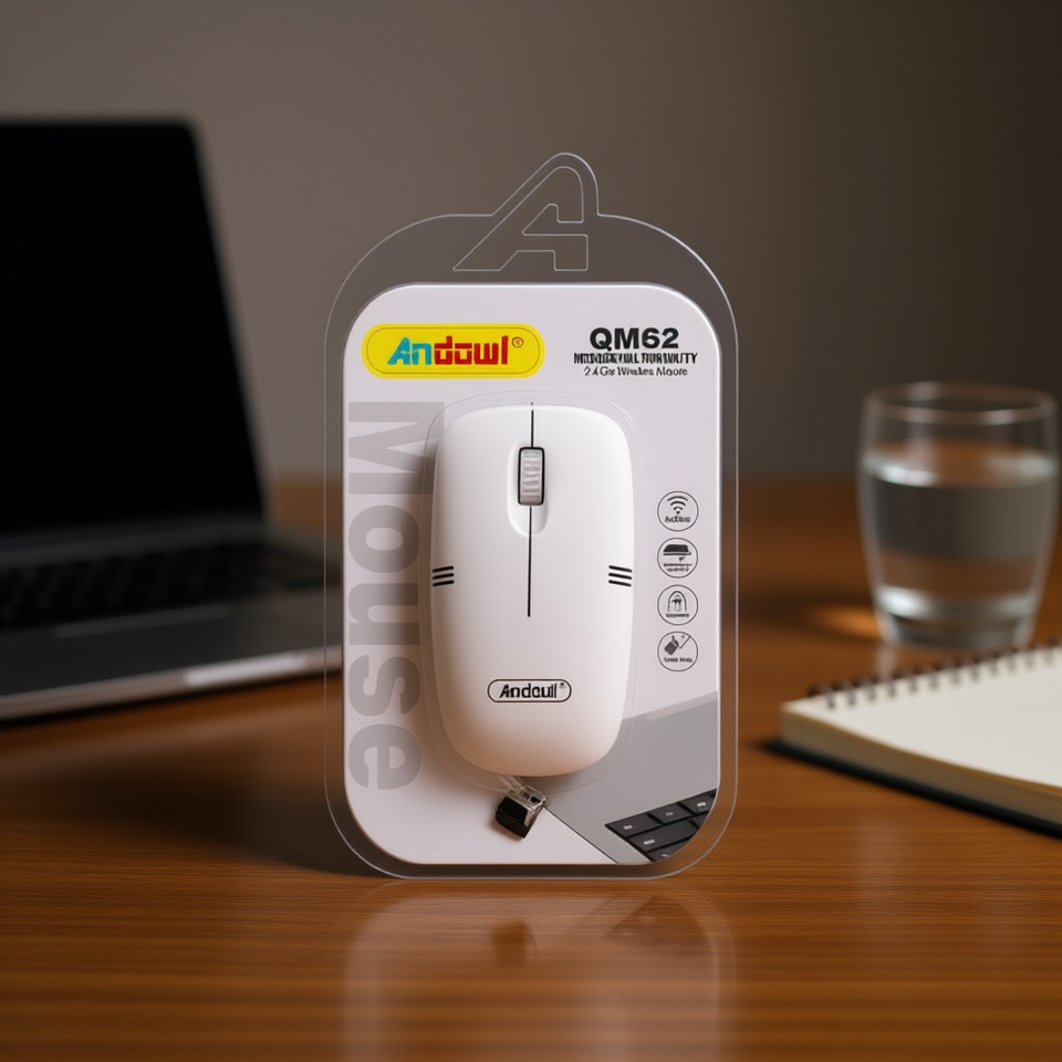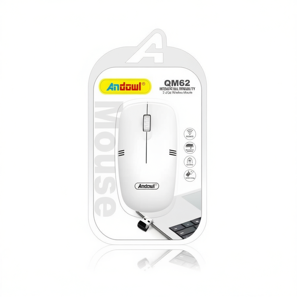 Andowl Qm62 Rechargeable Wireless Mouse 2.4Ghz Optical with USB Receiver and Type C Cable Right Hand in Stock