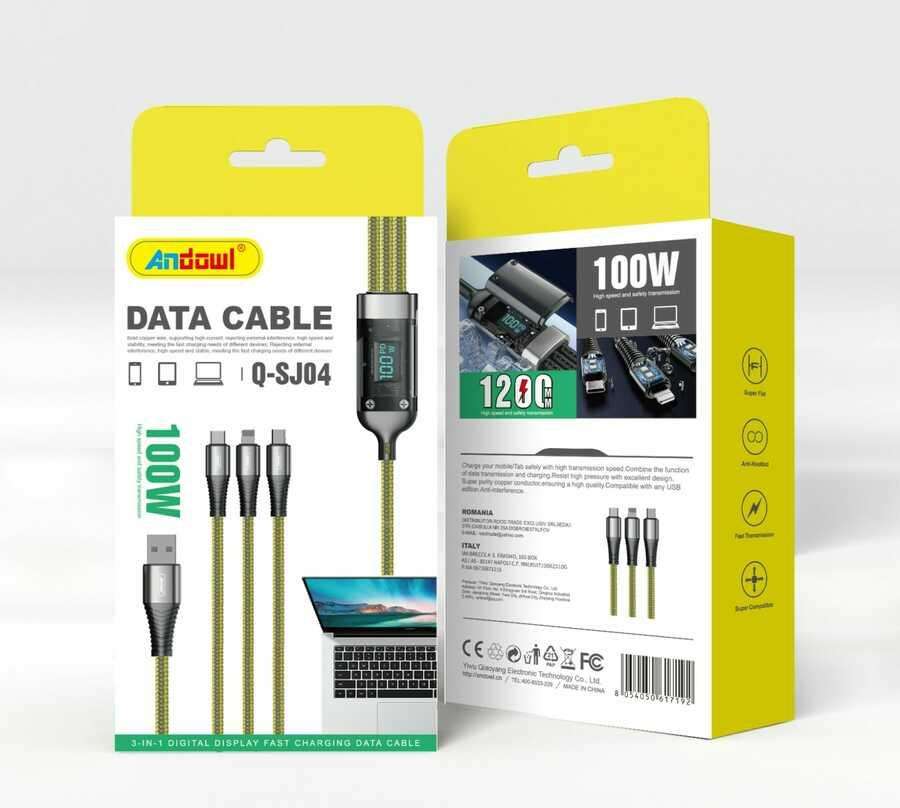 Câble de données Andowl Type C, blindé en nylon, gaine 1280C, charge rapide pour téléphone portable, connecteur USB 3.0 en cuivre pur Q-SJ04