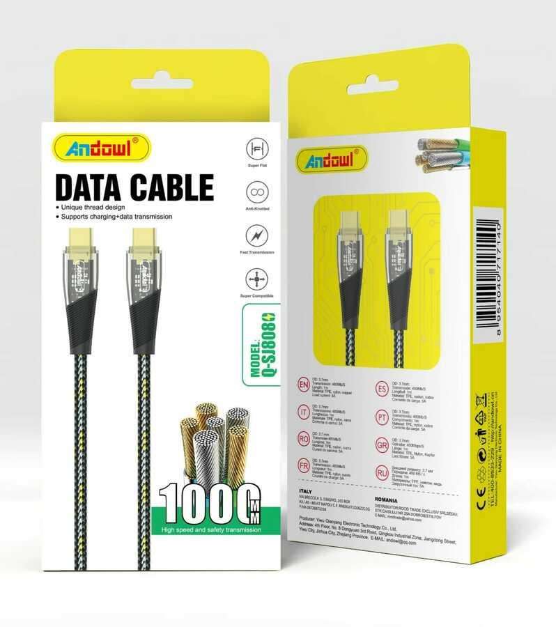 Câble de données USB 3.0 Andowl Type C vers Type C, tressé en nylon TPE, charge rapide 3A pour téléphone portable, conducteur en cuivre pur
