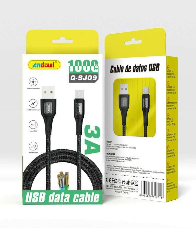 Câble USB Type C Andowl en nylon tressé, conducteur en cuivre pur, charge rapide 3A pour téléphone portable
