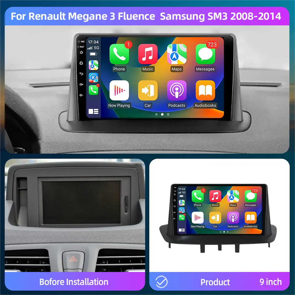 Android 10.0 Car Radio Carplay Video Player WIFI Multimedia Player pour Renault Megane 3 Fluence 2008-2014 DSP 2 Din 4G CE 9"