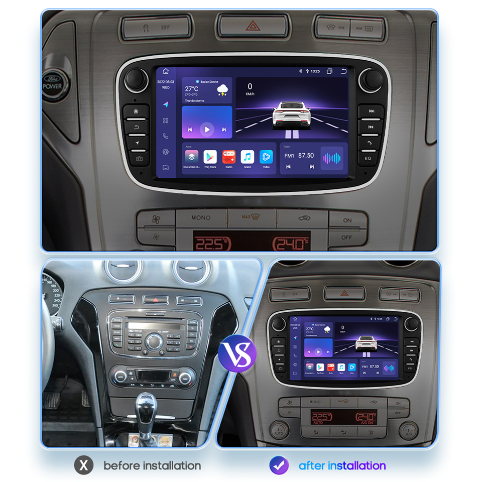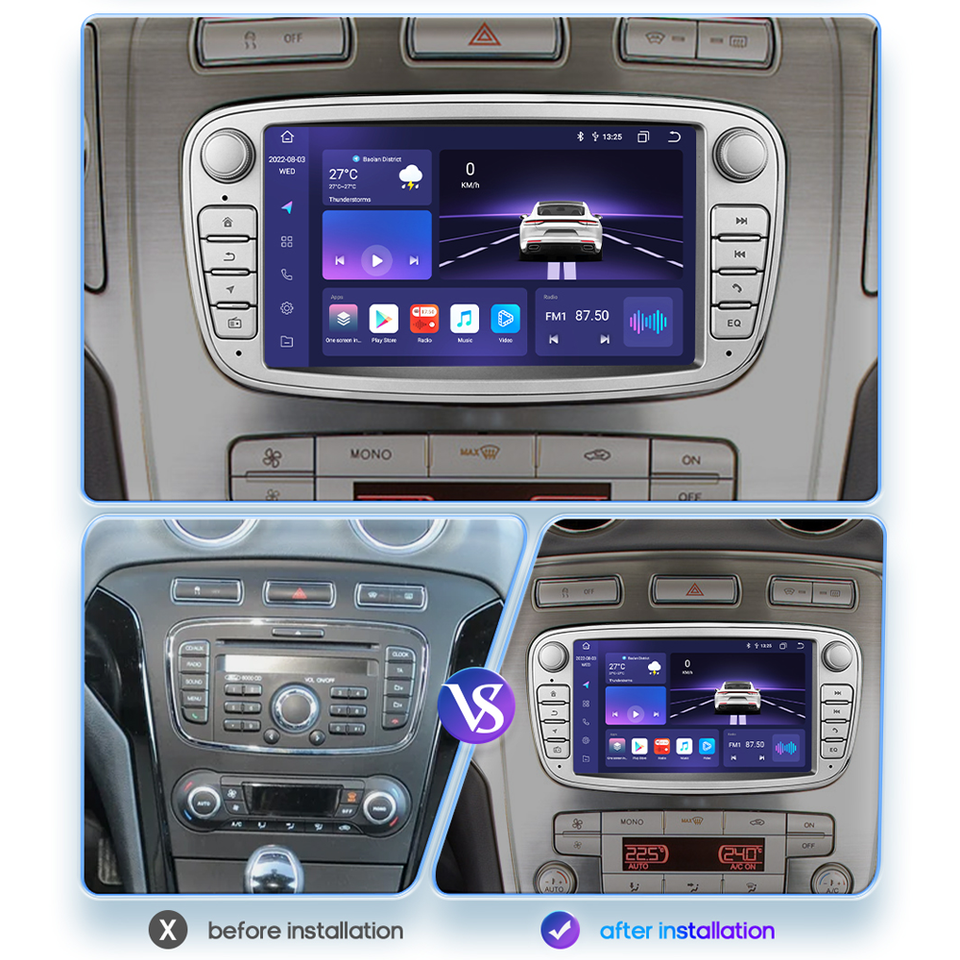 Android 10 Car Video Radio Autoradio 7 ''GPS WIFI BT pour Ford/focus/mondeo/c-max/s-max/galaxy Ii/kuga CE Écran tactile capacitif