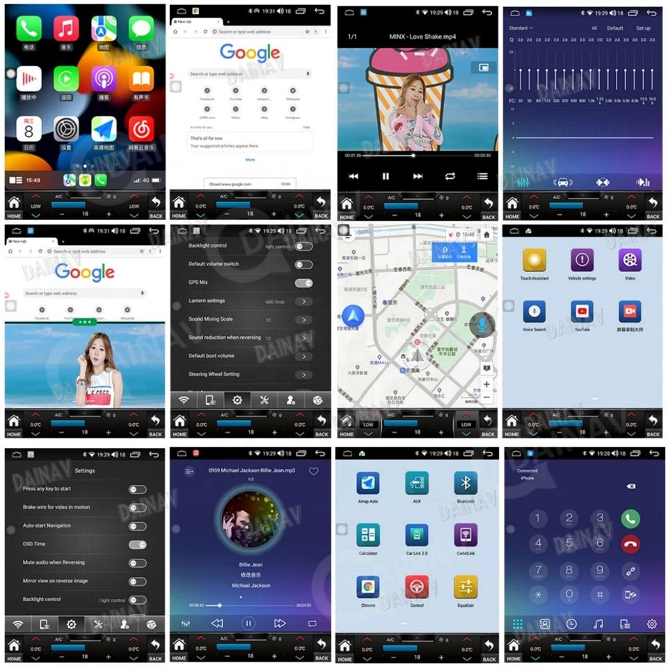 CarPlay, Android auto, Bluetooth-activé, Intégré DSP, MP3/MP4, Écran tactile, Visionneuse photo, Radio Tuner, Télécommande, Guidage vocal, Commande au Volant, Écran partagé, Aide à l'inversion, Multimédia Soutenu, Microphone Intégré, Téléchargement de l'application depuis le Play StoreFonction