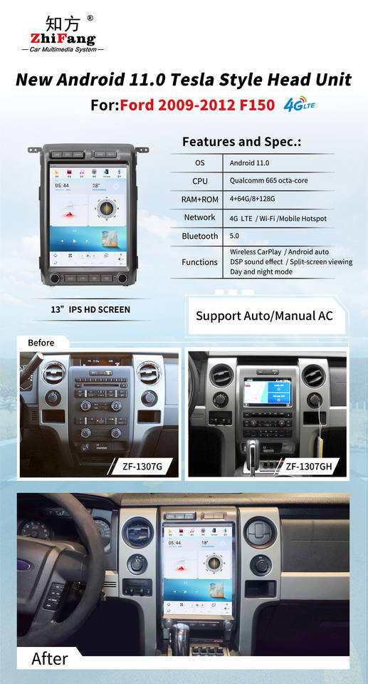 Android 13.0 tesla Style Car DVD Player Carplay GPS bluetooth Android pour Ford 2009-2012 F150 Radio Navigation 12.1 ''8 + 128GB
