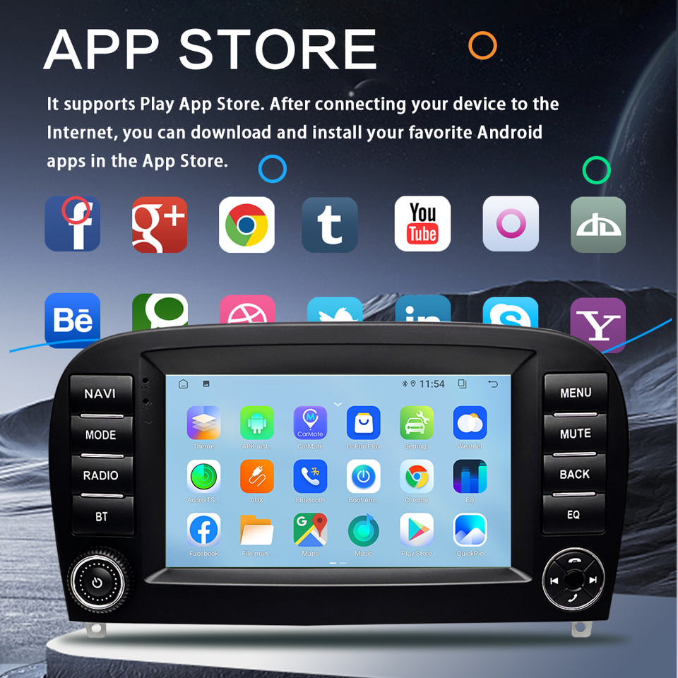 Android 13 autoradio multimédia lecteur vidéo sans fil carplay auto adapté pour Mercedes Benz SL R230 SL350/500/55/600/65 01-11
