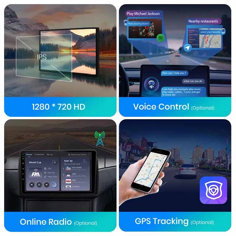 Bluetooth-activé, Gps intégré, Lecteurs MP3 / MP4, Radio Tuner, Écran tactile, Dvr, Transmetteur fm, Caméra de recul, Aide à l'inversion