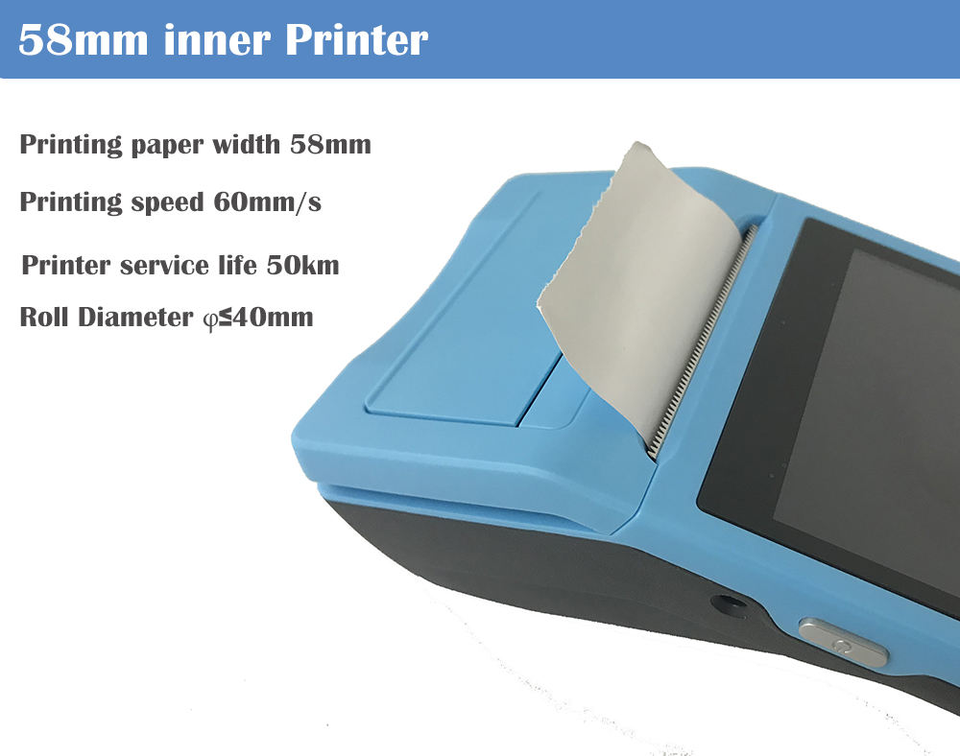 Terminal de point de vente portable Android 14 Intel Celeron J6412 3+32 Go, écran 6 pouces résolution 1280x800, Wi-Fi 6, NFC, Bluetooth 5.2, garantie 3 ans