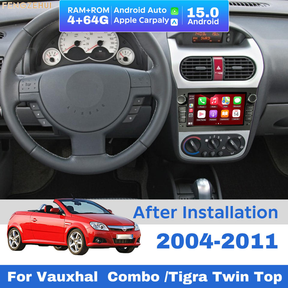 Android 15 Écran 7 pouces Navigation automatique Carplay Lecteur DVD vidéo GPS pour Vauxhall Combo /Tigra Twin Top 2004-2011 WIFI 4G