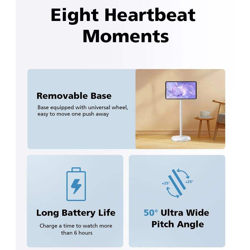 Téléviseur intelligent portable Android 15 LCD blanc avec écran tactile HD sur roulettes et caméra intégrée