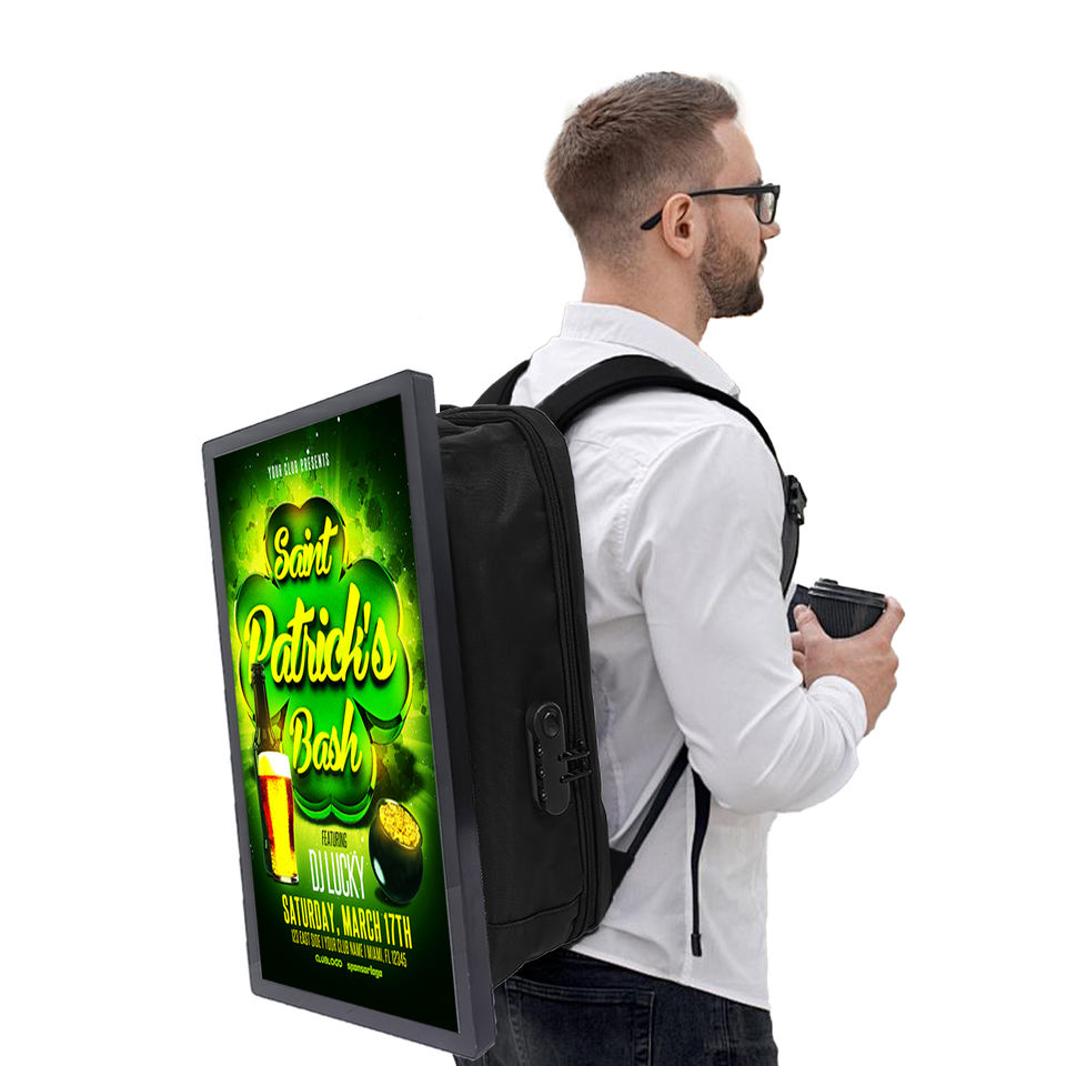 Sac à dos publicitaire LCD Android 27 pouces Panneau d'affichage numérique Sac à dos de marche humain Panneau d'affichage publicitaire mobile