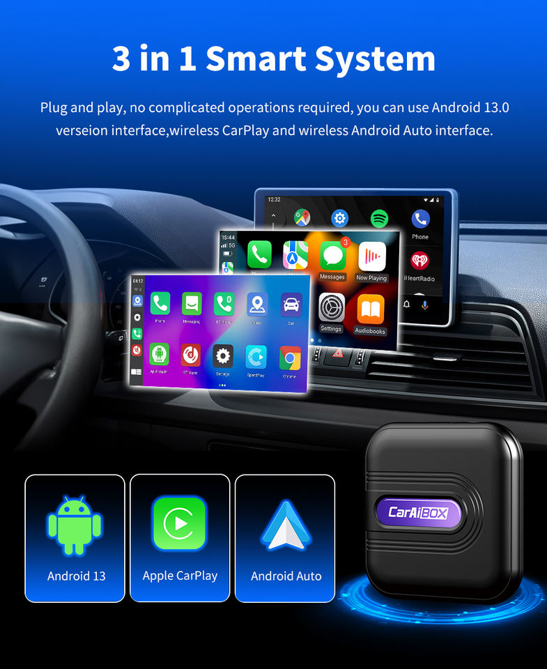 CarPlay, Android auto, CarPlay sans fil Android Auto sans fil Boîtier intelligent IA Android 11