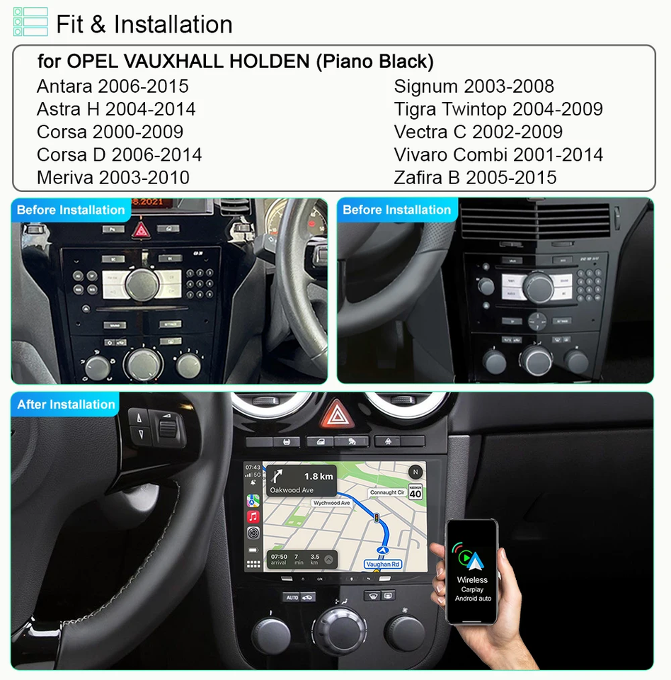 Autoradio Android Carplay pour Opel Astra H J 2004 Vectra Vauxhall Antara Zafira Corsa C D Vivaro Meriva Veda GPS FM Audio
