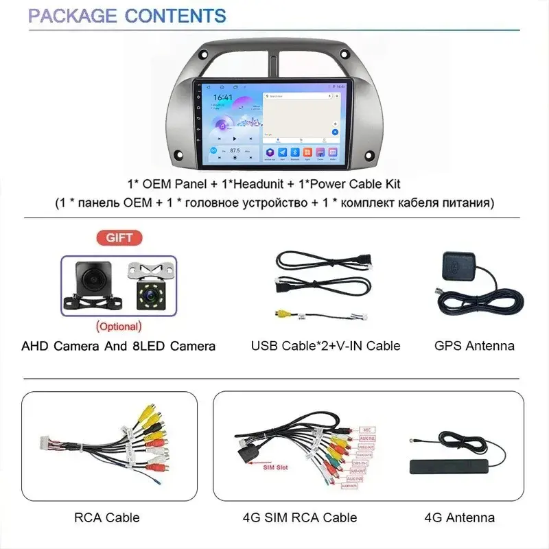 Autoradio Android pour Toyota RAV4 2001-2005 Lecteur Multimédia Sans Fil Carplay Stéréo 2Din Unité Principale Autoaudio Navigation GPS HD