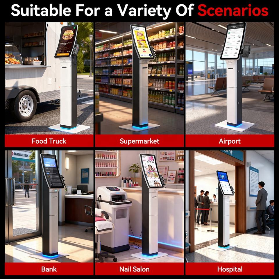 Logiciel de commande de nourriture sans argent liquide et de paiement par carte de crédit, kiosque de paiement sans argent liquide avec écran incurvé, système Android Win