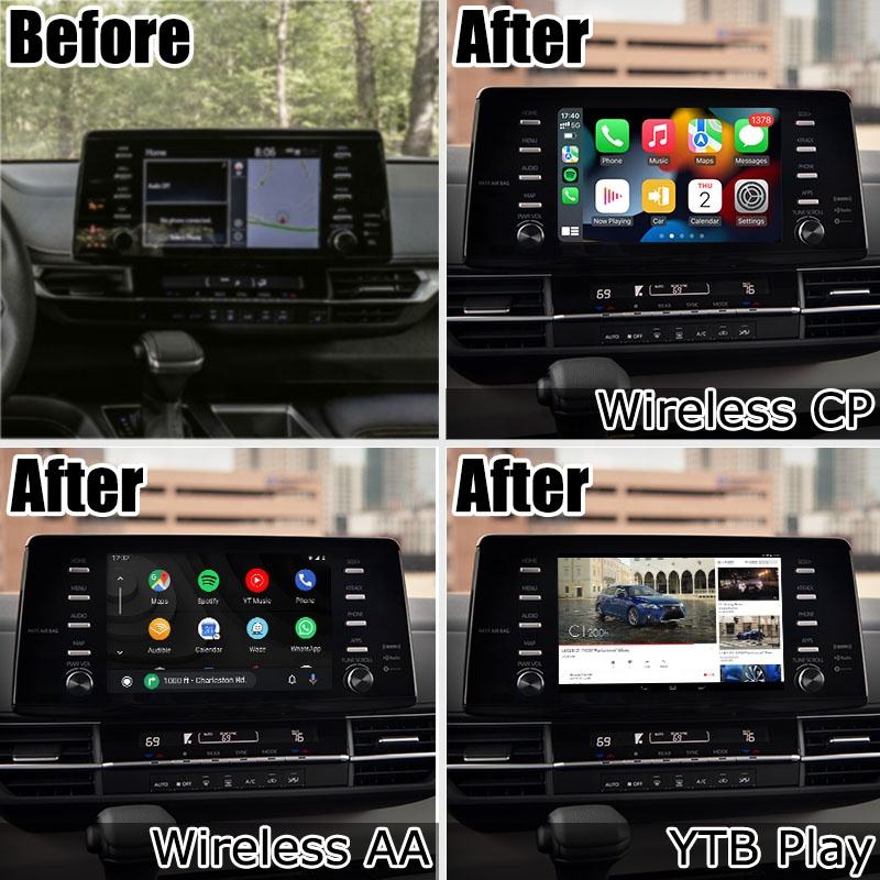 Boîtier d'interface de navigation automatique Carplay sans fil Android pour Toyota Sienna Harrier avec plein écran 2018-2022 par Lsailt