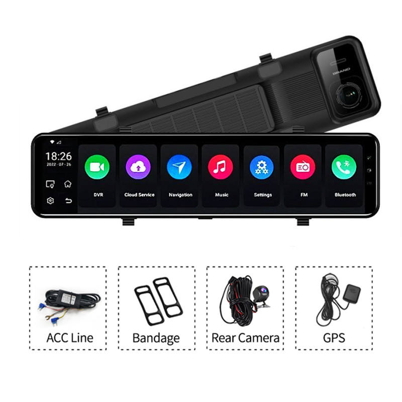 Android 10.0, rétroviseur de voiture 12 pouces, diffusion multimédia, double objectif, caméra 1080P, ADAS, DVR, tableau de bord, 4G Wifi, GPS, navigateur