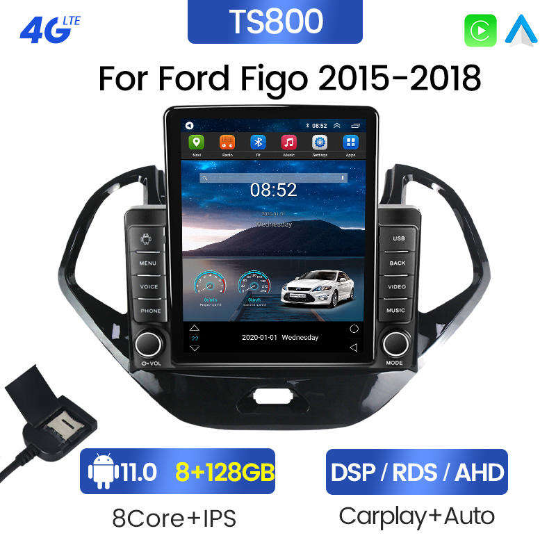 Autoradio Android 13 6+128G 4G WIFI DSP RDS AM FM pour Ford Figo 2015-2018, lecteur DVD pour voiture, Car-play+auto