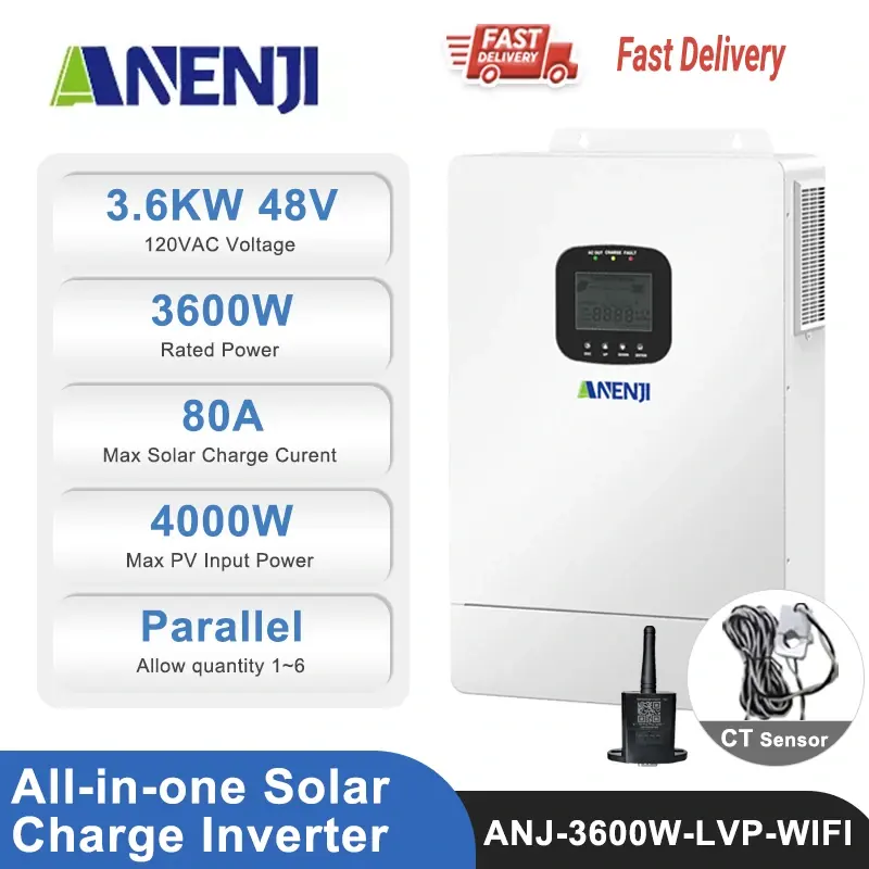 Anenji 3.6kw 48v Single phase Hybrid Inverter 120V ANJ-3600W-LV-WIFI All in One with WiFi CT Parallel US Version UL certified