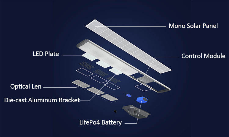Nom du produit:Lampadaires solaires LED tout-en-un intégrés